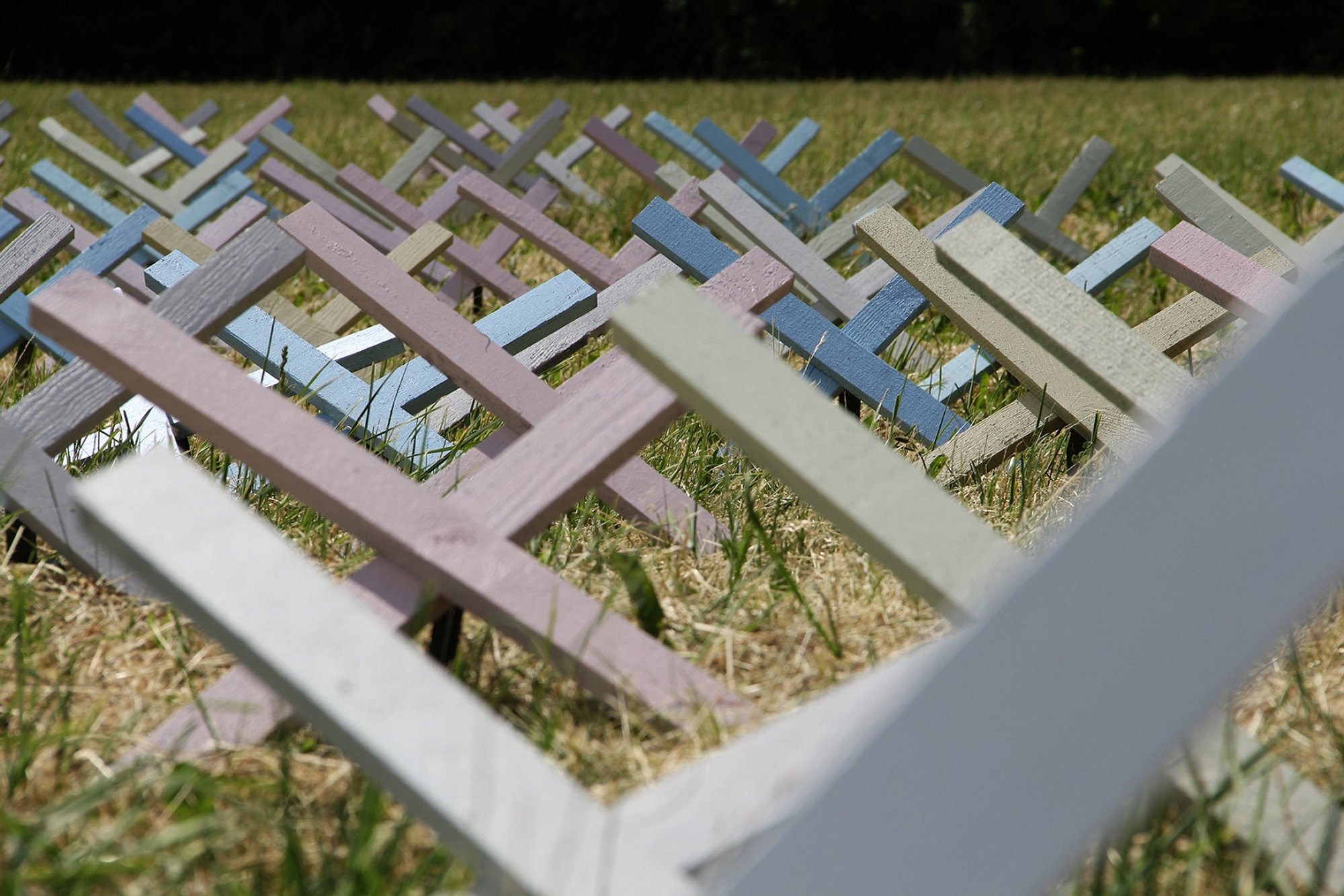 W pracy Grety Kardi-Kardišiūtė będzie można rozpoznać symbolikę, która dominowała w małoformatowych haftach tekstylnych, używanych przez kobiety w więzieniach i obozach. To właśnie te ręczne prace zainspirowały Mariău Jonutis, który na łące naśladował hafty drewnianymi krzyżami. Cóż, praca Liny Jonikė pokaże, jak ludzie zachowali ludzkie wartości, tożsamość narodową i pamięć w warunkach wygnania.